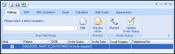 - Select the patients you wish to invite by ticking the Mail column.