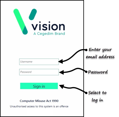 Note - If your password does not meet the complexity requirements and contain a combination of Upper case, Lower case and Numbers. A warning displays "You are logging in with a weak password. Please contact your local Vision Admin or Helpline for assistance or press Continue to login with a weak password."