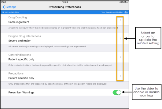- Prescriber warnings are not available for EMIS patients or when offline.