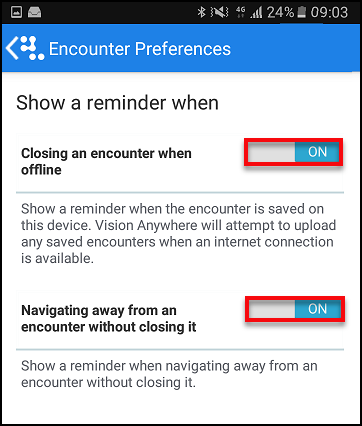 - Offline Encounters - You are prompted that you are offline and the encounter will be saved when a connection is re-established.