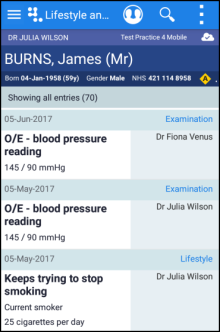 To see all lifestyle and examination entries tap the Lifestyle and Examinations heading.
