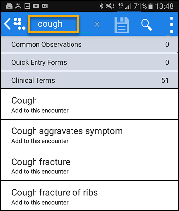 to activate the data entry bar, this can be used to record clinical terms, medication and common observations. - Enter the clinical term, a minimum of three characters are required.