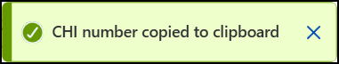 Select the CHI/NHS number to copy and CHI/NHS Number copied to clipboard displays.