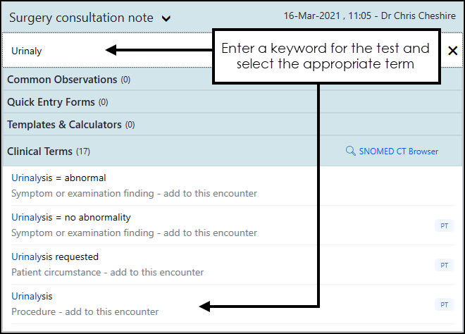 Select the appropriate clinical term from the available list, or select the SNOMED CT Browser, see Using the SNOMED CT Browser for details if required.