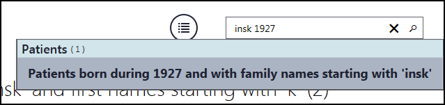1. From the Vision Anywhere Home screen, in Search for a Patient enter the first few letters of the patient's surname and forename with a space in between, for example, smi cli to search for Clifford Smith: