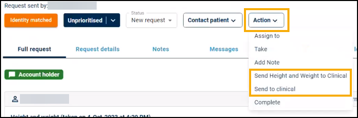 Send 'Specific items' to Clinical - To send individually coded items, or