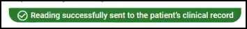 A 'Reading successfully sent to the patient's clinical record' message displays: