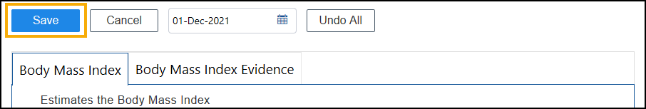 Once the Weight has been updated, the BMI displays automatically, select Save to update the patient's record.