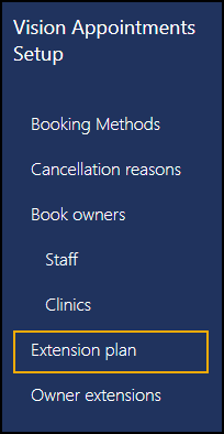 The Extension Plan is the first screen you see when you open Appointments Setup and provides the tools to manage your appointment books: