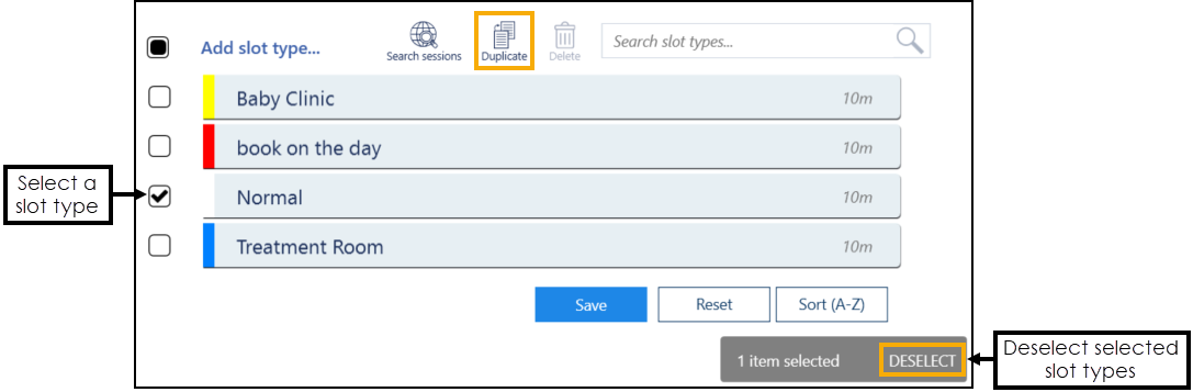 to duplicate the slot type.Note - You can only select one slot type to copy, if you select multiple slot types the Duplicate option becomes unavailable. -